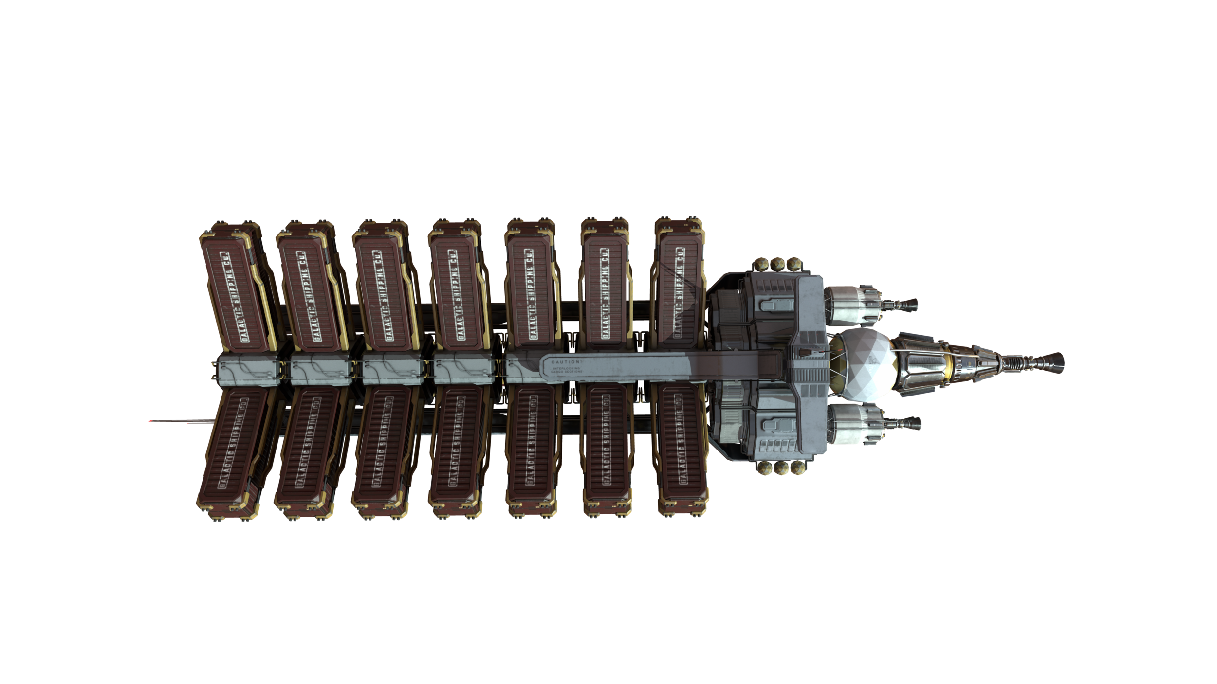 The "Atlas" Freighter is a behemoth of interstellar industry. Powered by an Anderson Fusion AFP-24B negative-mass confinement drive and the ability to add or remove cargo clusters, the Atlas-class freighter is the go-to for your shipping needs throughout the United Galactic Coalition.